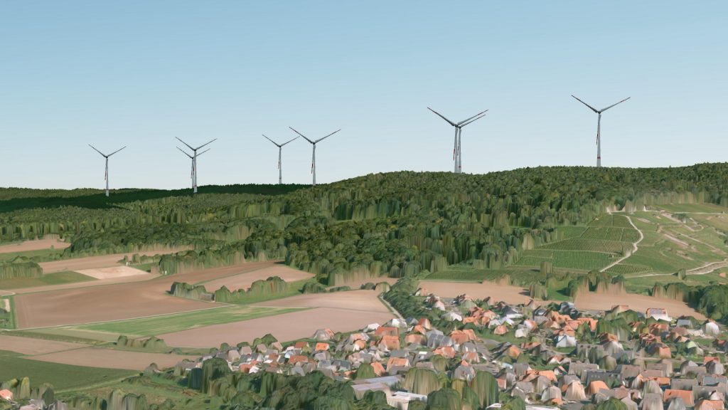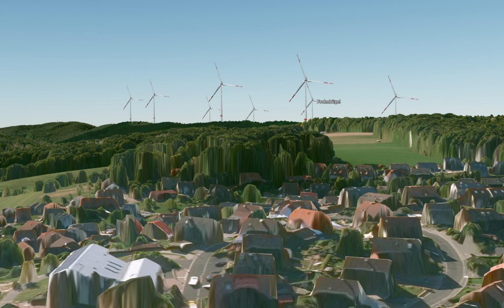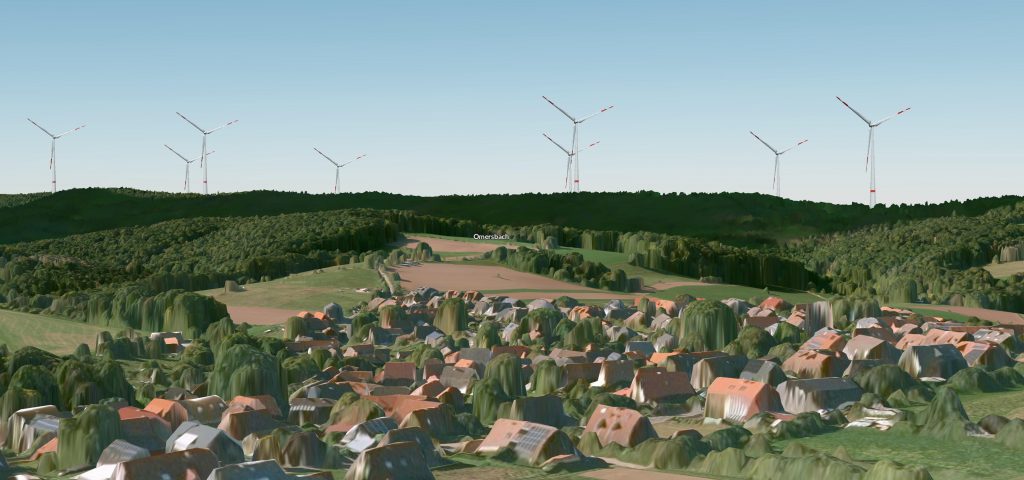 Die Waldhöhe Sölzert/Sülzert wird voraussichtlich so aussehen; 3dview-Simulation, Sicht aus Michelbach, Albstadt, Geiselbach und Omersbach