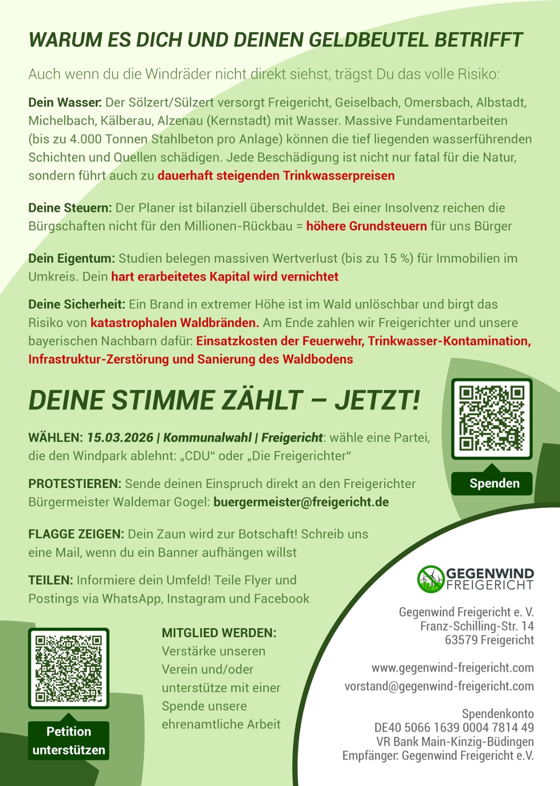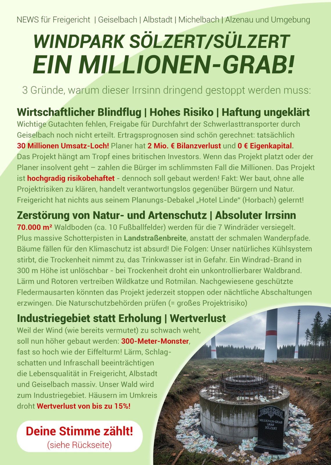 Bei der Kommunalwahl 2026 unterstützen Sie nur Parteien, die den Windpark Sülzert klar ablehnen (Die Freigerichter)